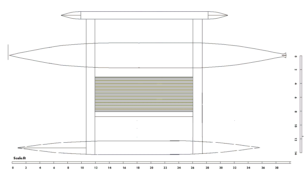 Please find sketches of a low cost, simple 40ft outrigger canoe. The idea is to create a seaworthy, simple, spartan vessel that could comfortably