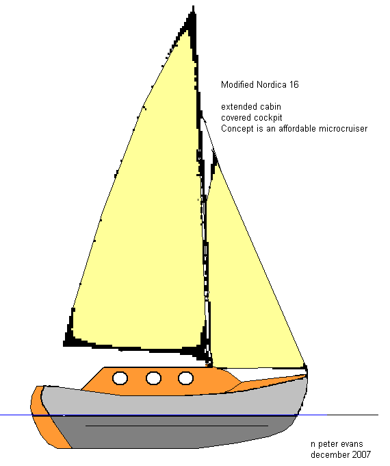 There have been a few microcruisers that I know of and most have tended to be fairly successful. The smart thing seems to be to use the central part of the boat as the accommodation area, and leave the ends free for watertight bouancy and storage compartments. I feel that trying to put in a separate cockpit on such a small boat is not worth the effort. My information is that second hand Nordica 16's can be bought for $1000 to $4000 in North America.