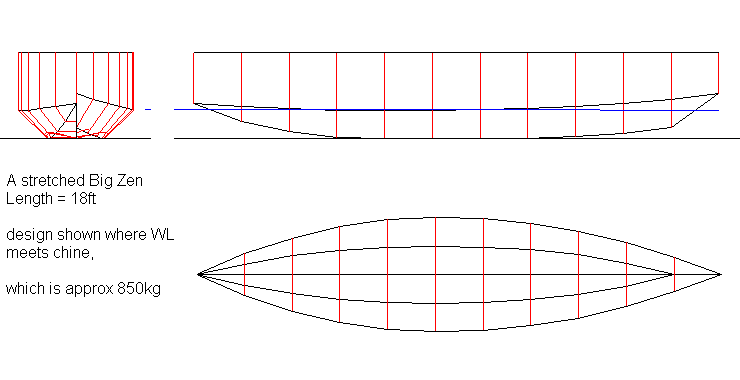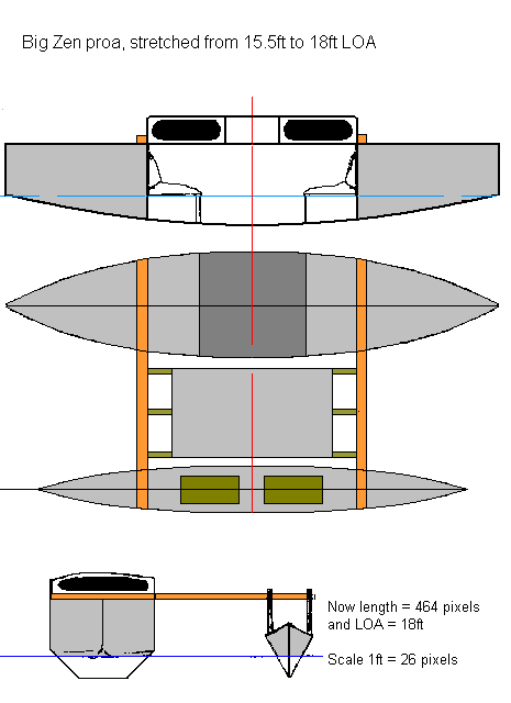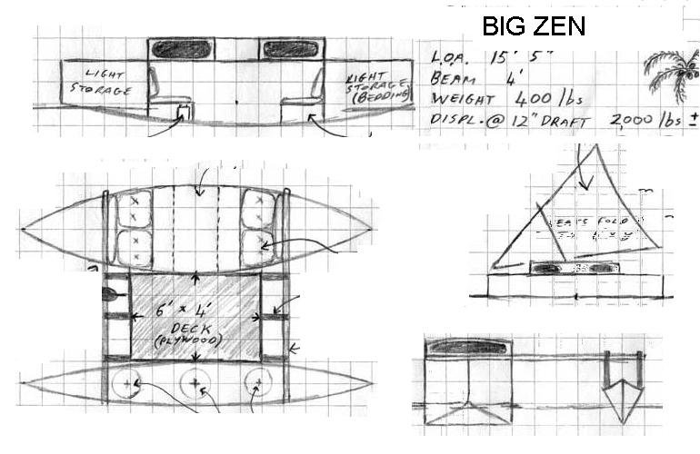 So lets do a hypothetical, lets do a design for a stretched Big Zen proa, a bigger more