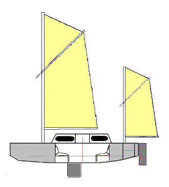 If we make the craft a tacking craft, instead of shunting, we only need one rudder, and we can apply a much simpler rig.