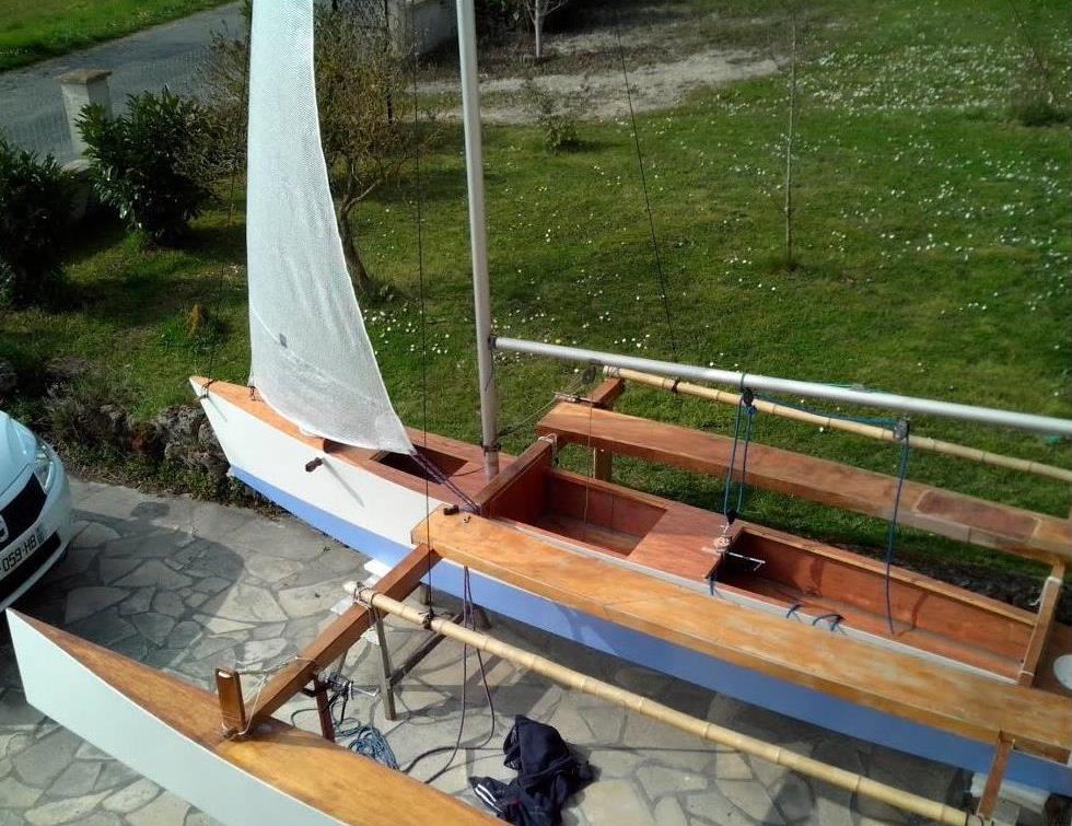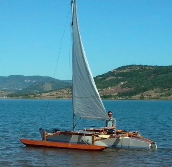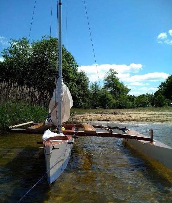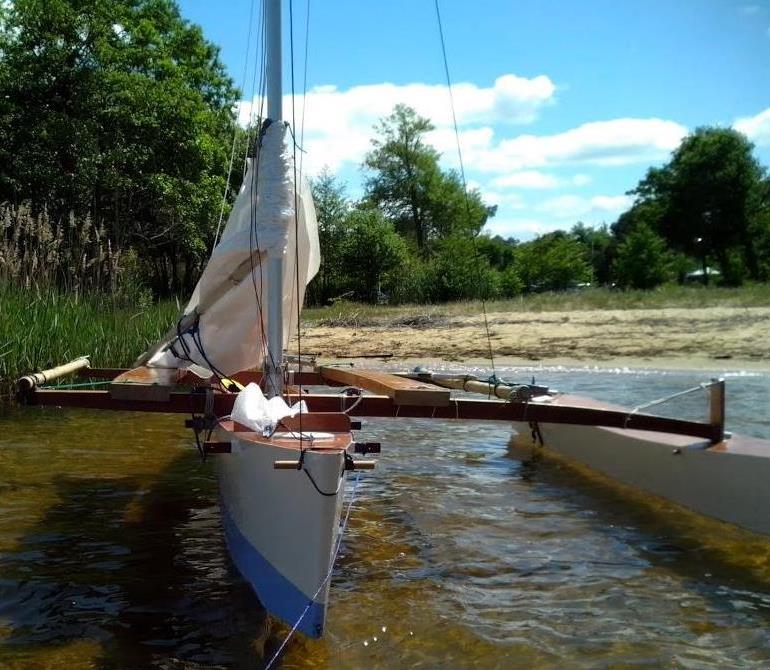 Here is a 17ft tacking outrigger by Tim Eley. Boat was finished mid 2013 and sails in Europe somewhere. This is Tim's second Tacking Outrigger.