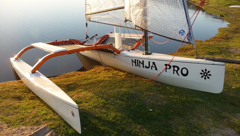 moulded crossbeams and the manner in which all parts store in one simple box. It appears to have a stayed carbon fiber mast. Specifications are shown down below. There is a small daggerboard that gives high pointing ability. I would recommend visiting both of the links above, as they are complementary.