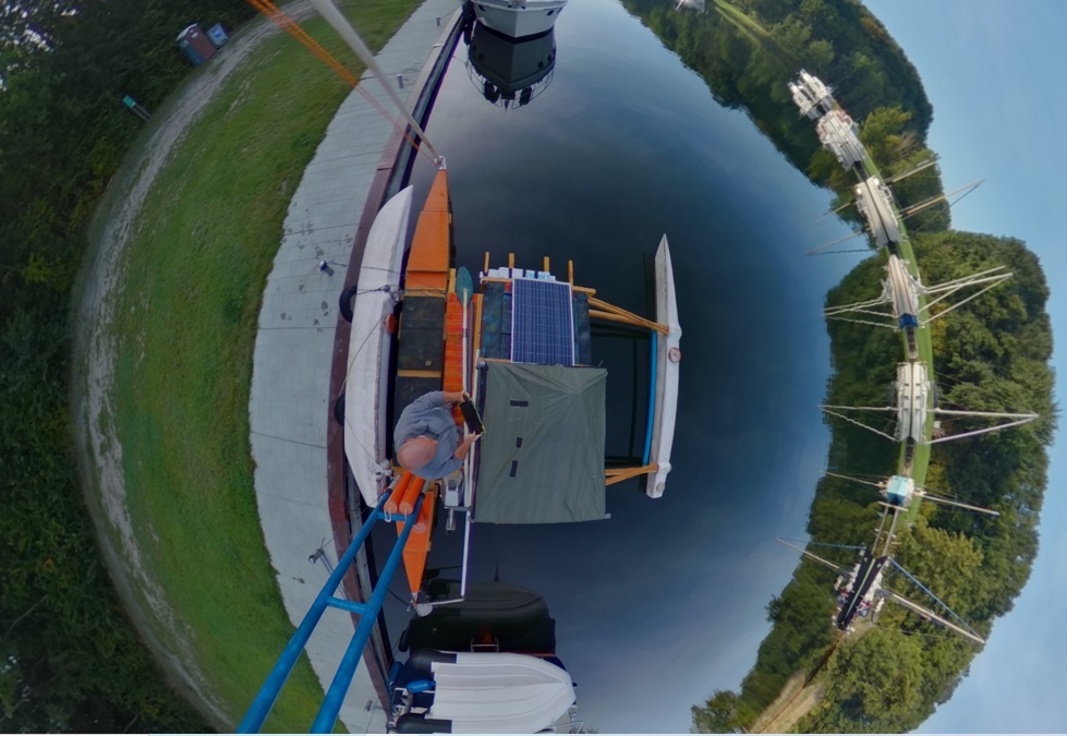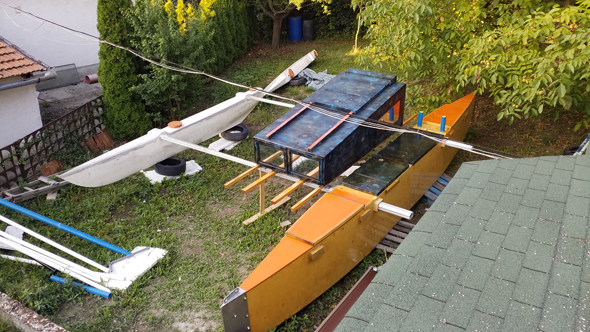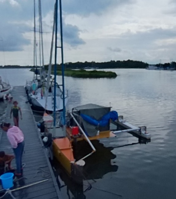 This 7.50m canoe is built in Hungary but has dutch registration. It is unusal in design having only one saial with roller furling jib, and an aft bipod mast. The owner says it sails well. More information at Owanderer.com via this LINK